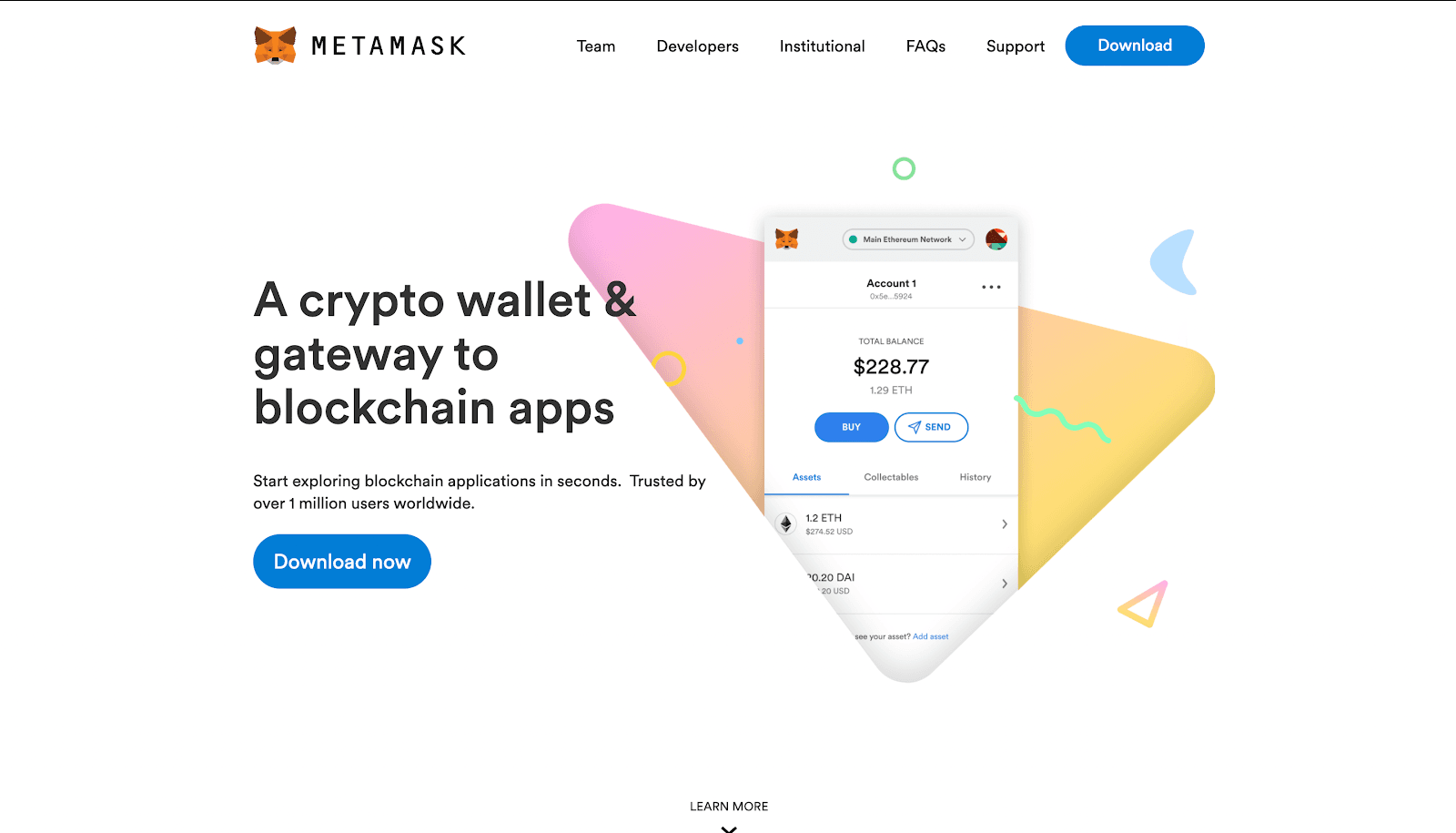 - Go to https://metamask.io and click “Download” on the top right. Note: We recommend using Google Chrome for a better experience.