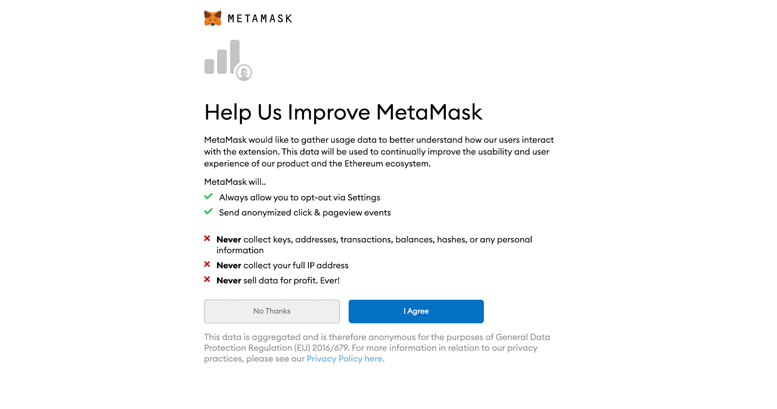 5. You should now be able to see the MetaMask icon on your extension bar. Click on the MetaMask icon, and this will lead you to a new page to start setting up your account.
