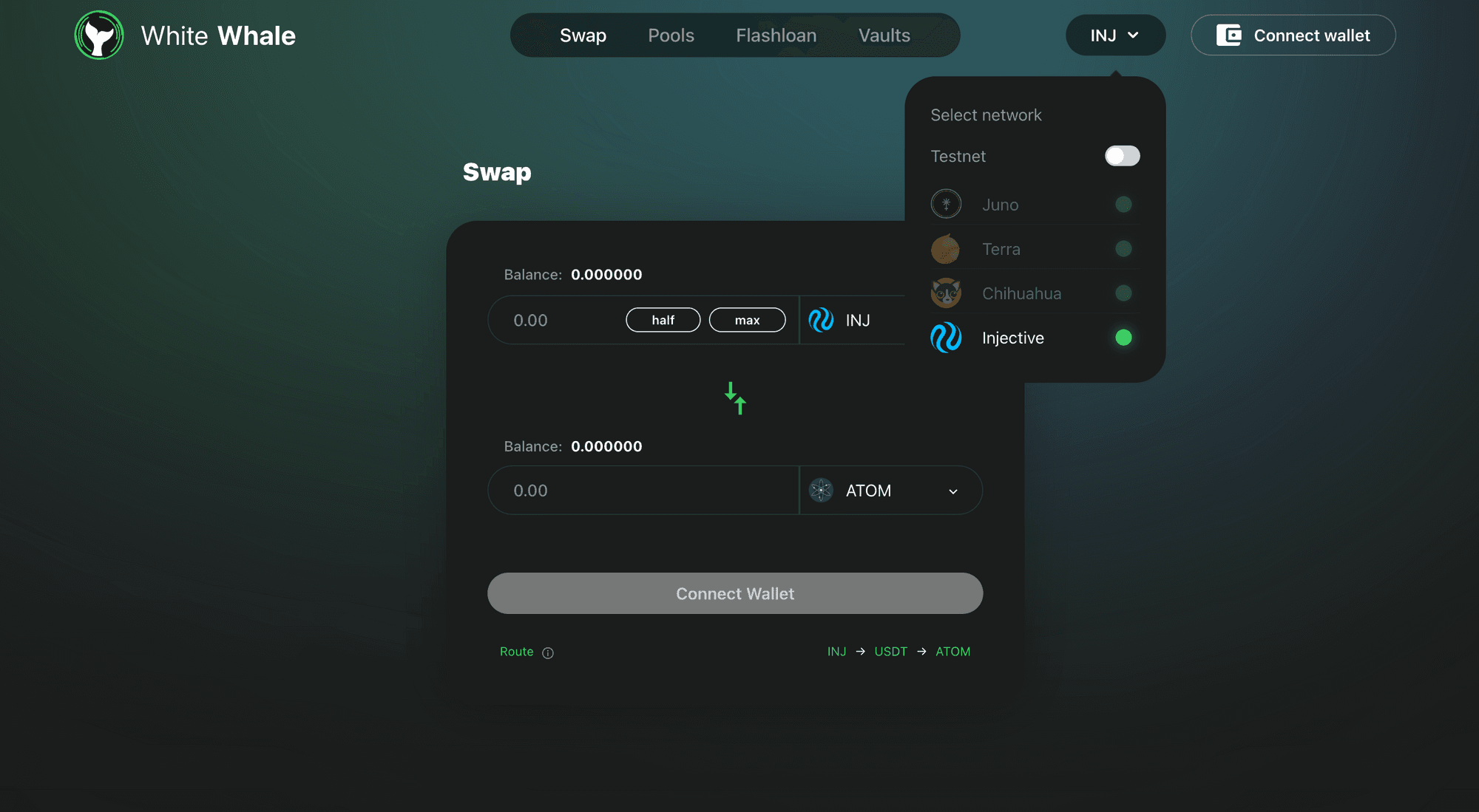 White Whale, the Cosmos interchain liquidity hub, is now live on Injective bringing Flash Loans to the ecosystem for the first time!