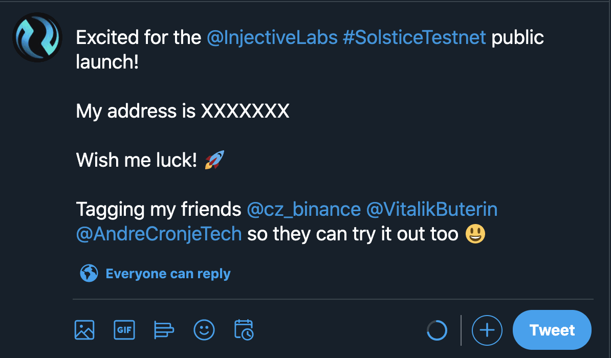 Tweet #SolsticeTestnet for a chance to be one of the 10 winners of $100 USDT!