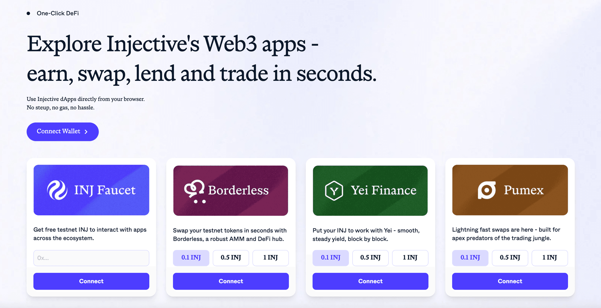 The EVM Testnet Portal already showcases a diverse group of projects leading the next generation of decentralized applications on Injective: